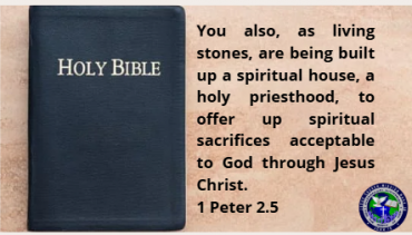 et vous-mêmes, comme des pierres vivantes, édifiez-vous pour former une maison spirituelle, un saint sacerdoce, afin d’offrir des victimes spirituelles, agréables à Dieu par Jésus Christ.